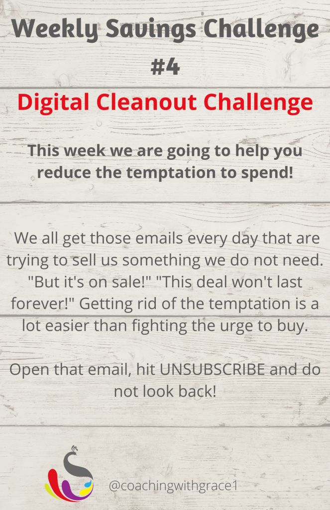 What does that mean for our challenge? You may see one of these challenges and think, “well, how does that relate to my finances?” Well, it may not directly relate. Unless you find $20 while cleaning out your junk drawer, it probably won’t have a huge impact on your budget, but each challenge will help you conquer at least one facet of your life.